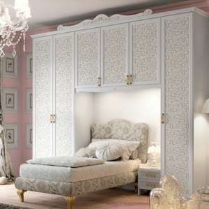 - Il sogno di ogni principessa! Composizione con Letto a Soppalco e cabina armadio. Sopra il letto e sotto un grande piano scrivania… in poco più di 2 metri, sogno, studio, disegno e dormo! E per conservare lontano da occhi indiscreti? Scelgo una comoda cabina armadio da allestire internamente con mensole, tubi appendiabiti e cassettiera! IL PRODOTTO E' DISPONIBILE IN DIVERSE…