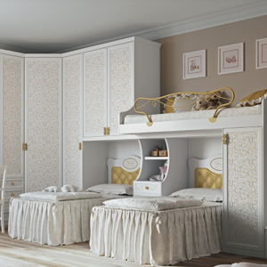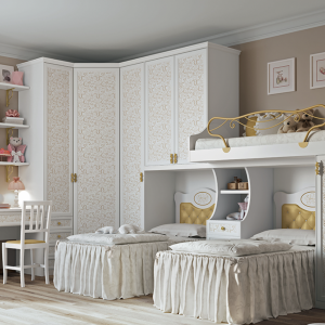 - Un unico progetto e moltiplico lo spazio! Composizione con Letto a Castello, design lineare, poche curve al posto giusto, materiale solido a prova di bimbo! Un bambino e tanti amici ovvero tanti fratelli e amici… La soluzione? Tre letti su tre livelli, l’ingombro rimane lo stesso ma moltiplico lo spazio per tre; pedana e gradini, così accedo facilmente al letto…
