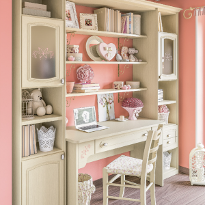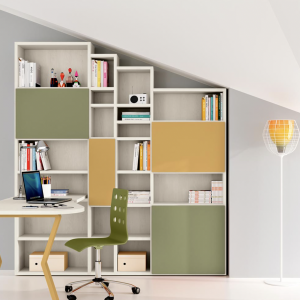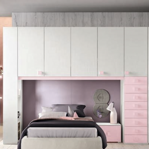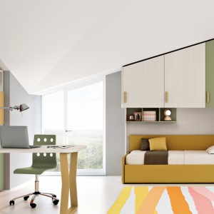 - Ragazze che crescono insieme! Composizione Ponte a due letti, Testiere “Onda” e “Nuvola” e Armadi lineari, componibili scegliendo tra diversi colori e organizzando al loro interno tubi appendiabiti sali e scendi e mensole. Da un lato, anche per loro, la zona notte e dall’altro, la zona studio con Scrivania e Colonna libreria, componibile nel numero di elementi, di mensole e…