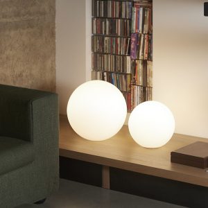 • Lampada da tavolo Slide, modello Globo IN. Una lampada perfettamente sferica, elegante, raffinata ed estremamente verstile. Globo IN è una lampada moderna realizzata in polietilene riciclabile tramite la tecnica dello stampaggio rotazionale, perfetta sia come lampada da tavolo che come lampada da terra. La sua forma essenziale e la luce soffusa che emana ne fanno un complemento d'arredo capace di creare…